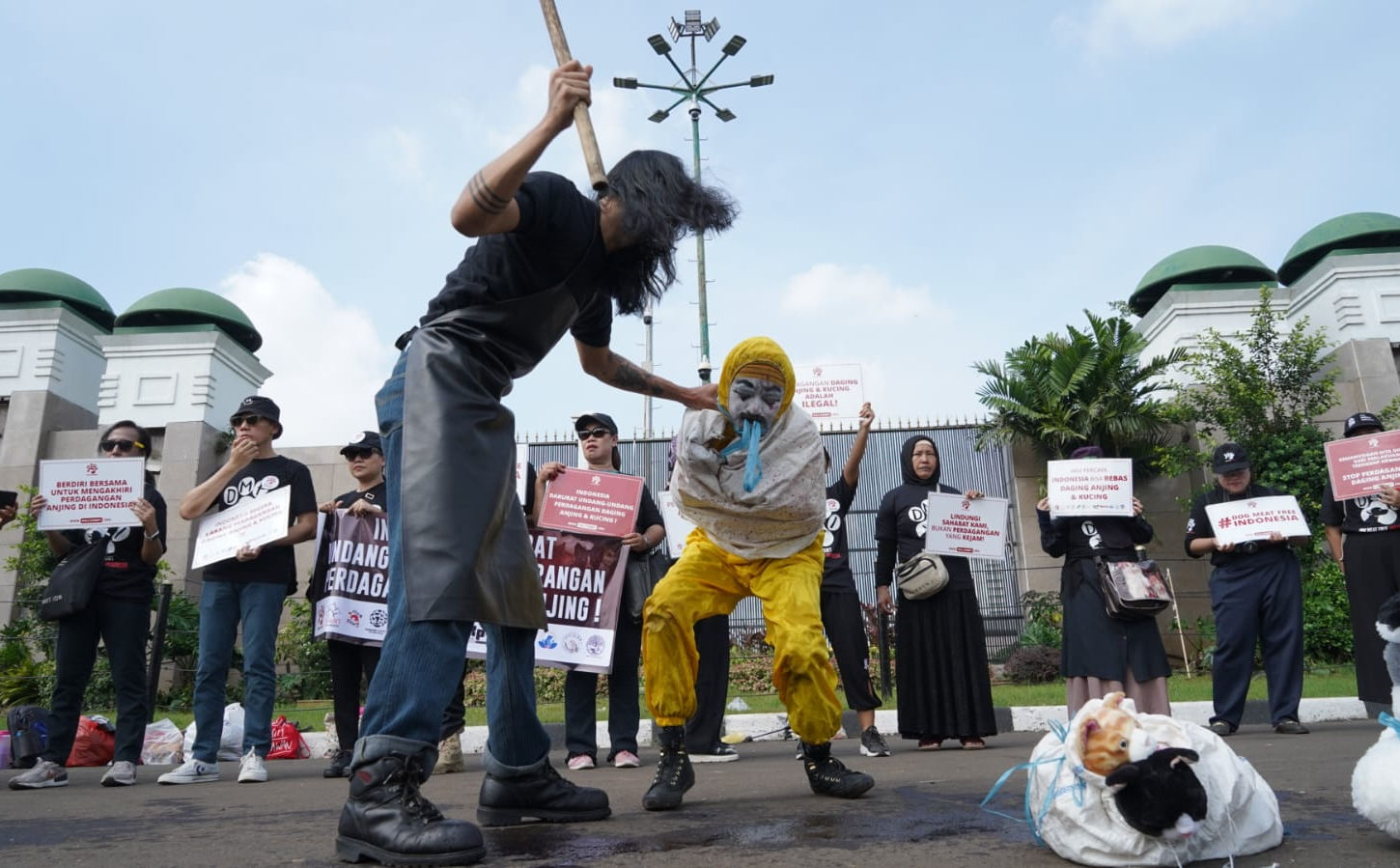 AKSI DAMAI DI DEPAN GEDUNG DPR: INDONESIA DARURAT UNDANG-UNDANG PELARANGAN PERDAGANGAN DAGING ANJING-KUCING!
