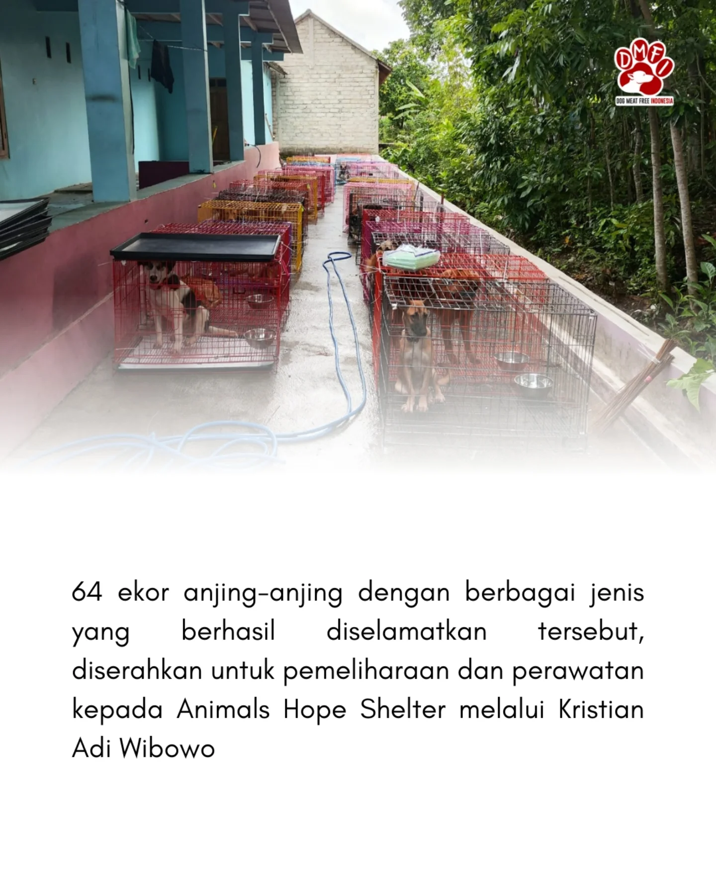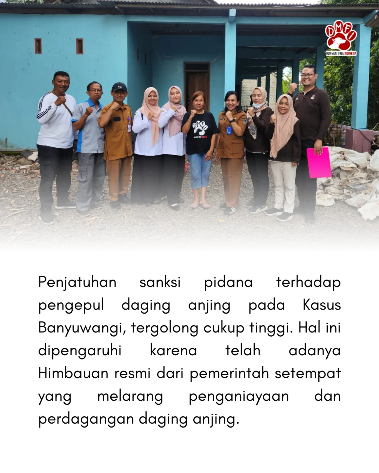 Pada 16 November 2024, DMFI dan Animal Hope Shelter melakukan penggrebekan sebuah rumah pengepul anjing di Banyuwangi. Sebanyak 64 ekor anjing akan dibawa ke Solo Raya, untuk nantinya dijual dagingnya. Per 10 April 2024, pelaku divonis bersalah dan mendapat hukuman penjara 1 tahun 6 bulan dengan denda 10 juta rupiah.