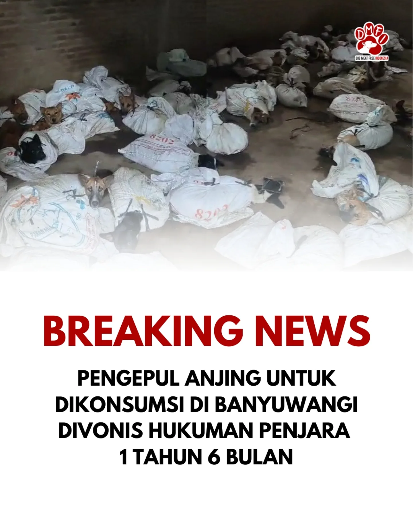 Pelaku Pengepul Anjing untuk Dikonsumsi Divonis Hukuman Penjara 1 Tahun 6 Bulan dan Denda 10 Juta!